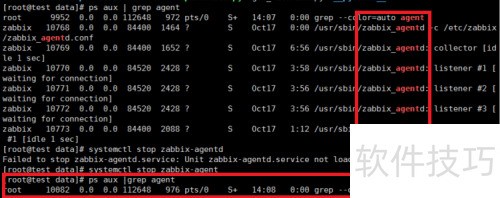 28、 当系统检测到严重故障时才会触发报警动作。为模拟这一情况,我们手动关闭其中一台服务器的zabbix-agent服务。所示,agent已成功停止运行。系统将在一段时间后检测到该异常状态,并自动触发相应的报警机制,从而验证报警功能的准确性和及时性。