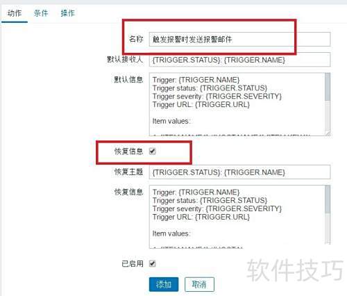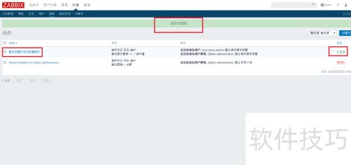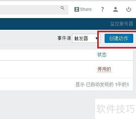 25、 当系统发生故障时,需设置触发动作以发送报警邮件至邮箱。进入配置页面,选择动作选项,点击右侧的创建动作按钮,按提示完成设置即可实现故障报警功能。