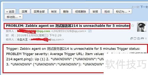 29、 在监控页面等待约5分钟后,系统出现报警提示,稍后也收到了邮件正常发送的通知。需特别注意的是,若修改了报警脚本的存储路径,必须重启zabbix_server服务进程。否则,系统将无法正确调用新路径下的脚本,导致报警功能失效。这是由于Zabbix默认仅在/usr/local/zabbix/share/zabbix/alertscripts/目录下查找脚本文件,路径变更后若未重启服务,配置不会生效,从而引发脚本找不到的问题。