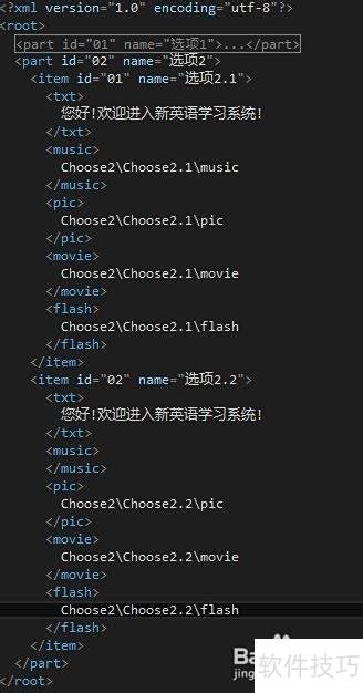 4、 了解XML元素结构:由开始标签、数据内容和结束标签三部分组成。