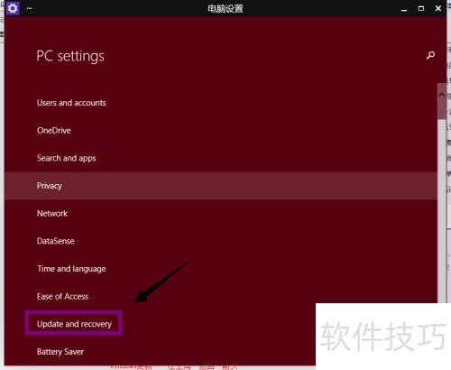 3、 选择Windows的更新与恢复选项,确保系统语言设置为中文界面。