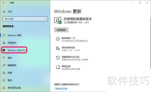 8、 在更新与安全界面,首先选择左侧的Windows安全中心选项。