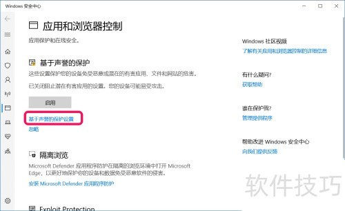 10、 进入应用与浏览器控制界面,选择声誉保护选项,点击进入声誉保护设置进行配置。