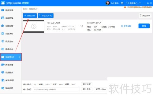 1、 打开迅捷视频转换器,选择视频转GIF功能,进入转换界面。通过点击上传按钮或直接拖拽文件,将需要转换的视频添加至指定区域,即可完成视频文件的导入操作,为后续转换做好准备。