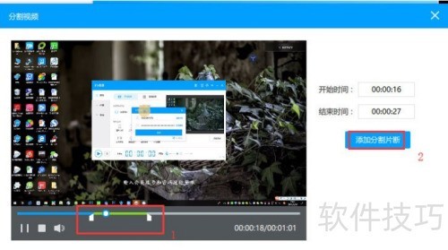 2、 在1处调整导出片段,2处确认添加,可重复操作多次以添加多个分段,最后点击完成。