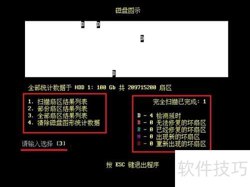 11、 此时可查看所有扇区的结果列表,按任意键返回上一步,再按ESC键即可退出硬盘再生器程序,具体操作所示。