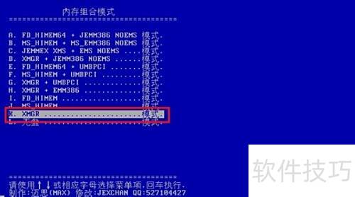 3、 在内存配置界面选择K.XMGR模式,按下回车键运行,具体操作所示。