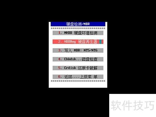 5、 在硬盘检测或MBR界面中,选择第2项HDDReg硬盘再生器,按下回车键运行,操作所示。