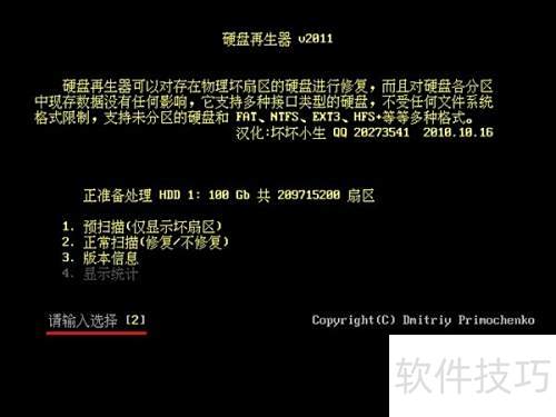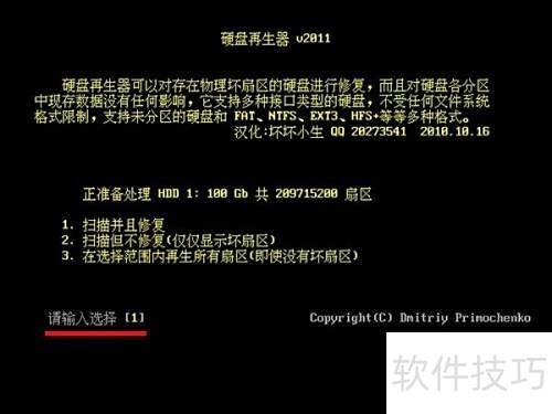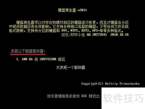 6、 硬盘再生器将自动扫描电脑中的硬盘驱动,若存在多个驱动器,请仔细选择所需项,确认后按回车键继续操作,具体界面所示。
