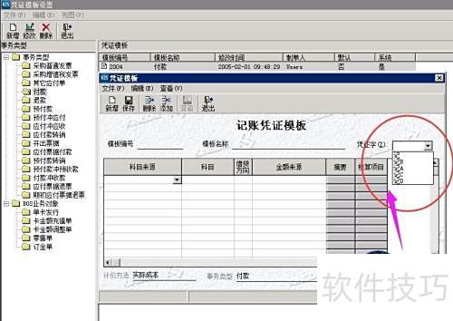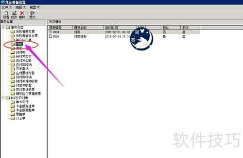 15、 注意:修改模板前,须先选定要操作的事物类型,此处以付款作为示例进行说明。请确保选择正确类型后再进行后续操作。
