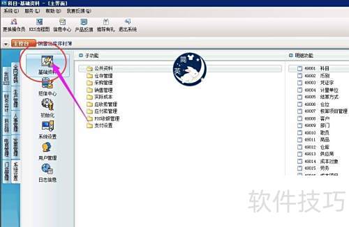 4、 进入系统设置模块后,选择其中的基础资料选项进行操作。