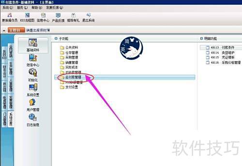 8、 应付款管理子功能位于基础资料模块的倒数第三项,请注意查找。