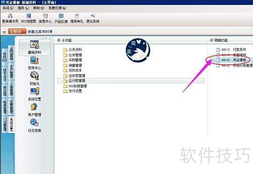 11、 请注意,49115 凭证模板功能位于应付款管理模块的第三项子功能中。