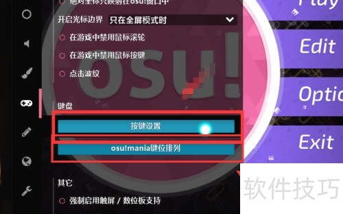 3、 下载完喜欢的谱面后,返回游戏,进入osu mania键位排列选项,即可自定义按键设置,方便操作。