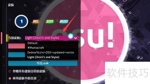 5、 选择合适的皮肤对玩好osu!mania至关重要,简洁清晰的皮肤有助于提升读谱效率和准确度。