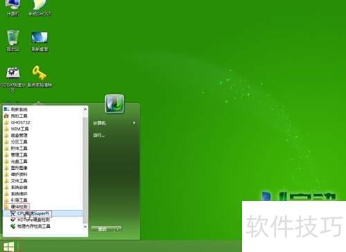2、 进入PE桌面后,点击左下角开始菜单,选择硬件检测—cpu测速SuperPi运行程序,操作所示。