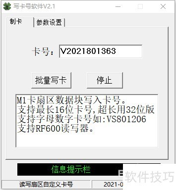 3、 利用写卡软件与RF600读写器,将卡面印刷的卡号信息写入卡片芯片中。