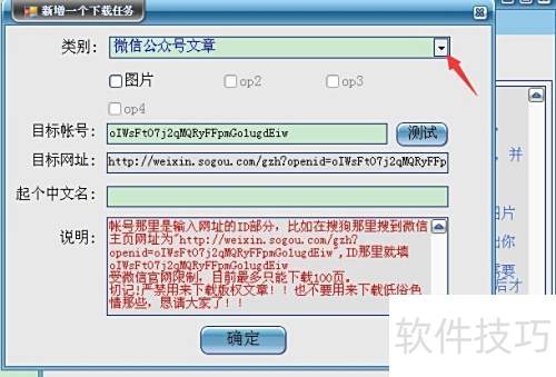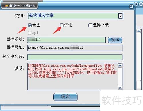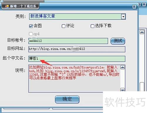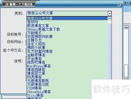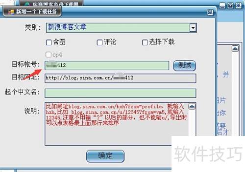 2、 点击箭头指示的下拉按钮,选择实例为新浪博客文章。