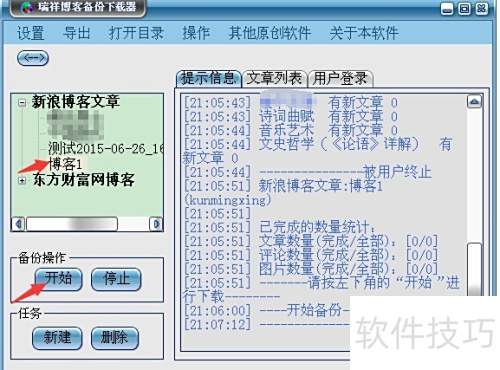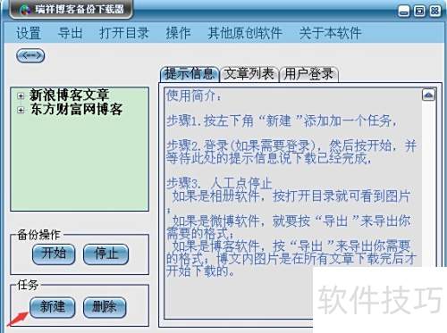 1、 搜索百度找到博客备份工具,下载安装瑞祥软件后启动,点击新建即可开始操作。