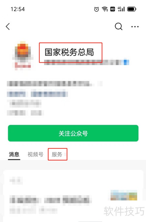 1、 打开微信,搜索并进入国家税务总局公众号,点击服务选项。
