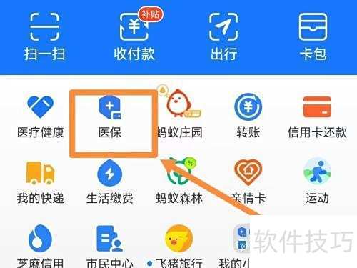 1、 进入支付宝首页,点击医保功能。