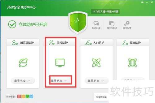 3、 点击系统防护中的查看状态按钮,操作所示。