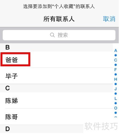 3、 在通讯录中逐一选择需收藏的联系人,暂不支持批量操作。