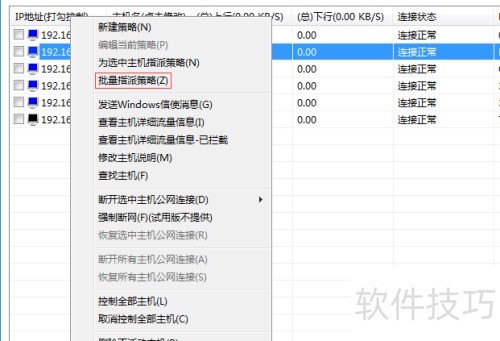 17、 在任意活动主机上右键点击,从菜单中选择批量指派策略选项。