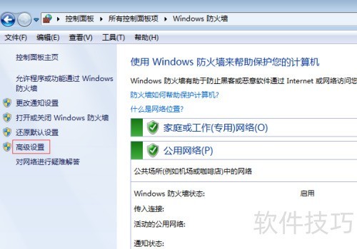 2、 在Windows防火墙界面左侧,点击高级设置选项进入配置。