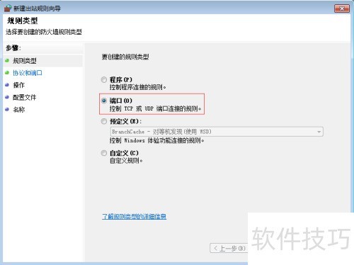 4、 选择端口后点击下一步。
