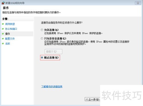 6、 选择阻止连接,然后点击下一步。