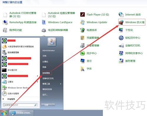 1、 在电脑桌面上依次点击开始菜单和控制面板,在控制面板右上角选择查看方式为大图标,然后找到并点击Windows防火墙选项即可进入设置界面。