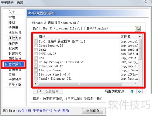 打开千千静听,进入播放器设置,选择音效插件并开启均衡器,调整参数以增强听歌时的音响效果。