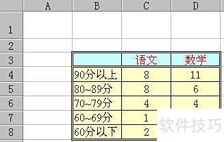9、 在统计各科目成绩的分数段人数时,首先需对不同分数区间进行数据汇总。以语文为例,可在新工作表的C4单元格输入公式COUNTIF(‘期中成绩’!\$D\$2:\$D\$24,>=90″),用于统计90分及以上的学生人数。接着,在C5单元格输入COUNTIF(‘期中成绩’!\$D\$2:\$D\$24,>=80″)-C4,计算80至89分之间的学生数量,减去已统计的高分段人数以避免重复。随后,在C6单元格输入=COUNTIF(‘期中成绩’!\$D\$2:\$D\$24,>=70″)-C4-C5,用于得出70至79分区间的人数。在C7单元格输入=COUNTIF(‘期中成绩’!\$D\$2:\$D\$24,>=60″)-C4-C5-C6,从而获取60至69分段的学生人数。通过上述步骤,即可准确完成语文成绩在各分数段的分布统计,为后续的数据分析和图表绘制提供基础支持。整个过程逻辑清晰,便于操作与核对。