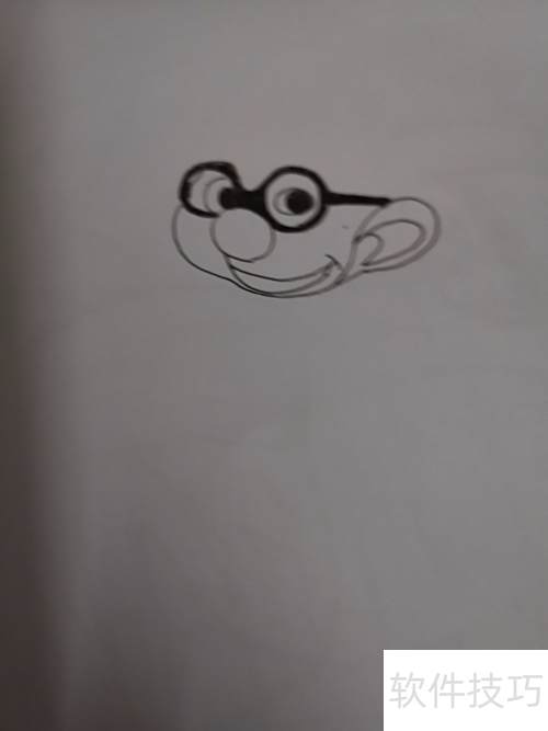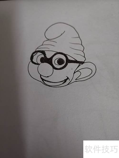 1、 先画一个戴着眼镜的蓝色精灵头。