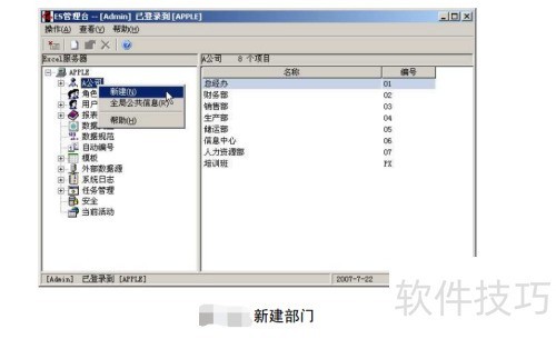 6、 鼠标右键点击,选择新建并进入相关部门选项。