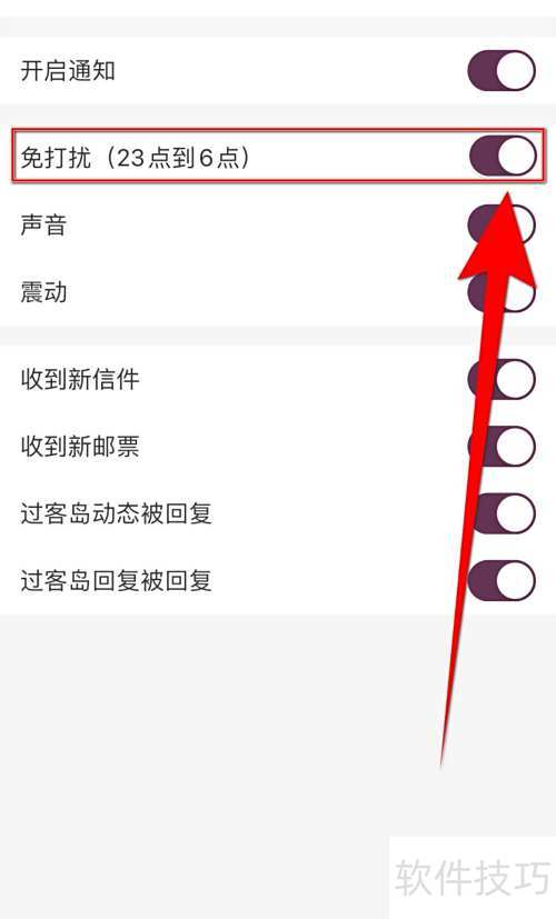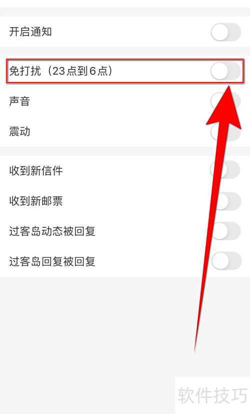 3、 在设置中点击免打扰(23点至6点)右侧的圆形按钮。