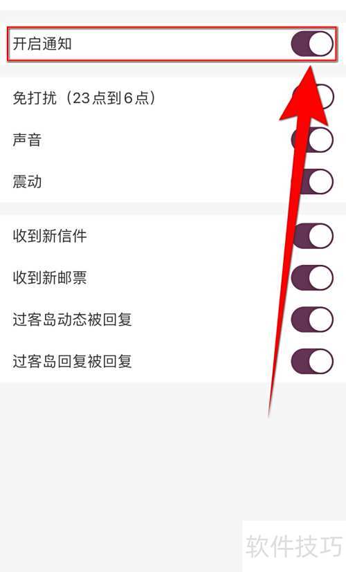 4、 开启通知后,圆点变棕即表示过客功能已成功启用。