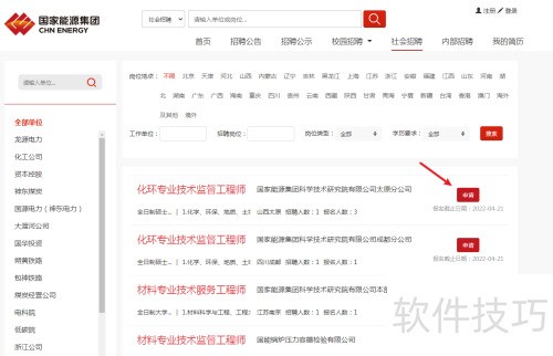 3、 点击社会招聘,查看图示,选择合适职位并申请。