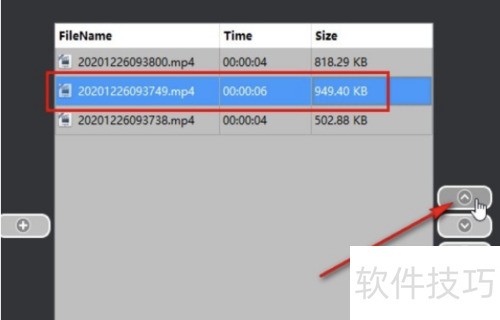 2、 添加完毕后,可选择任意一条视频,通过右侧的上下箭头图标调整其顺序,具体操作所示。