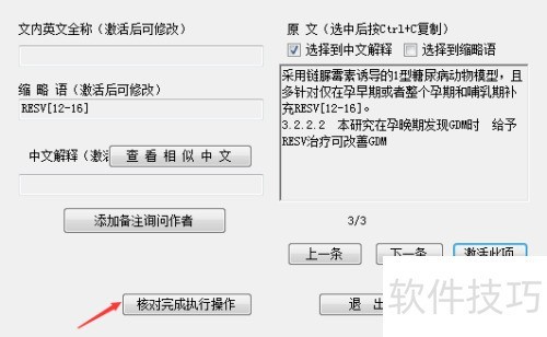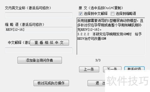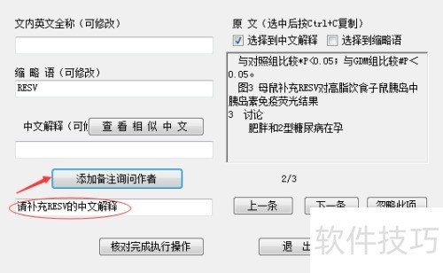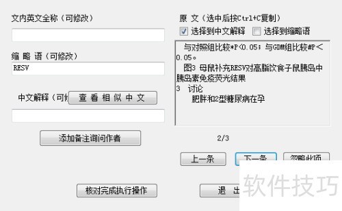2、 在缩略语核对窗口中,可通过鼠标选择中文解释,所选内容将自动填入文本框,亦可手动输入。