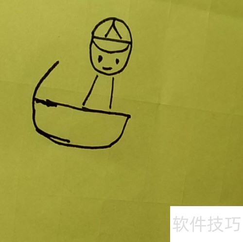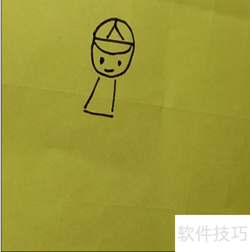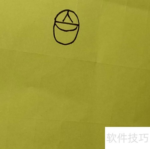 1、 先画小男孩的头部,接着添加一顶帽子。