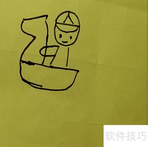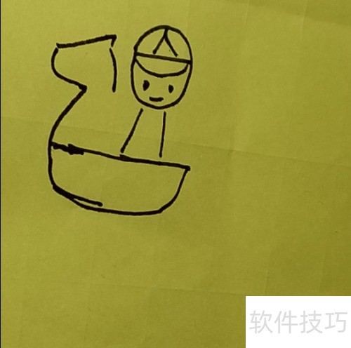 7、 接着画出小男孩的双腿,整体轮廓已基本完成。为增添动感,在后方添上两条短线条,看似微小,却能表现出木马正在摇动的动态感。作品就此完成,过程十分简单。