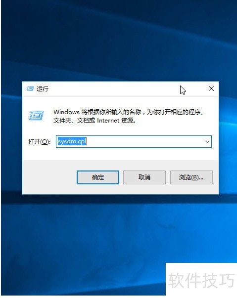 1、 按下键盘上的WIN加R键,打开运行窗口,输入sysdm.cpl后回车即可进入系统属性设置界面。