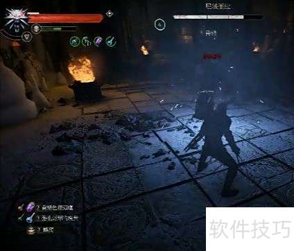 进入游戏后,先使用药水与剑油,选用恶灵油和毒蛇银剑,装备亚克席法印。以武器进攻并及时后撤。当狂猎士兵血量降低触发护罩回血时,用装备恢复自身血量,最终取得胜利。