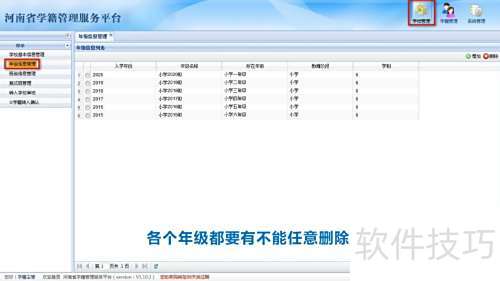 5、 学校年级信息需按学制完整维护,严禁随意删除,确保管理体系规范有序。