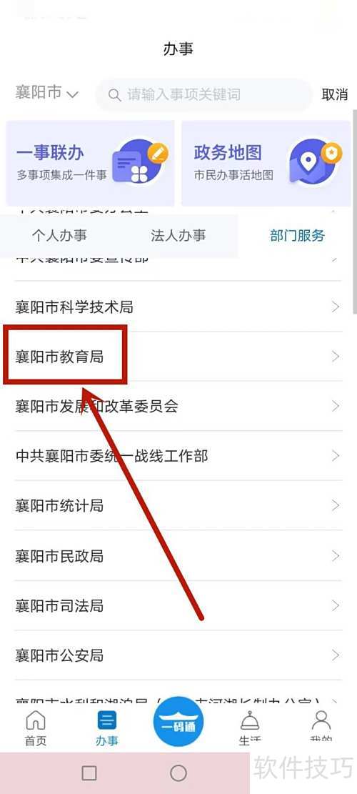 1、 打开i襄阳应用,进入部门服务,选择教育局类别。