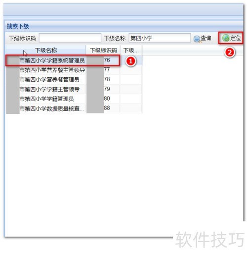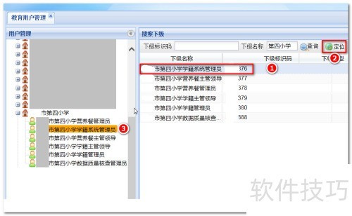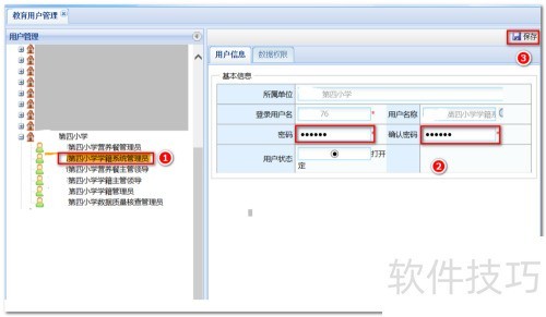 5、 选择该账号后,点击右侧定位按钮,即可设置学校系统管理员密码。