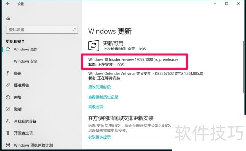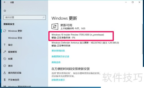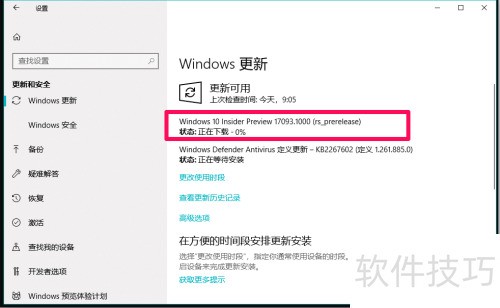 3、 由于Windows 10 Insider Preview 17093.1000(rs_prerelease)的更新文件未能正常显示,系统无法检测到可用更新,从而导致升级过程无法进行,影响了版本的顺利更新。