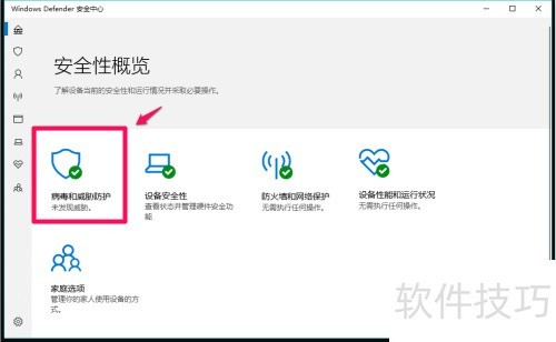 5、 进入Windows安全中心,选择病毒与威胁防护选项进行设置。